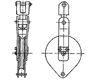 | Тип блока | Чертеж | Допускаемая нагрузка на подвеску, КН | Допускаемое усиление в канате, не более КН | Диаметр каната, мм | В | Н |