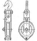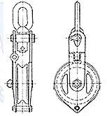 Канифас-блоки для стальных канатов, применяемые на судах и плавучих средствах для изменения напряжения ветвей замкнутой тросовой проводки.